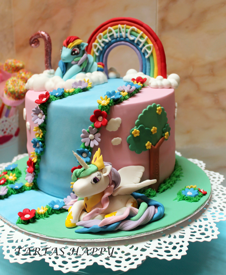 Y no puede faltar la tarta con los littles pony favoritos de la cumpleañera.