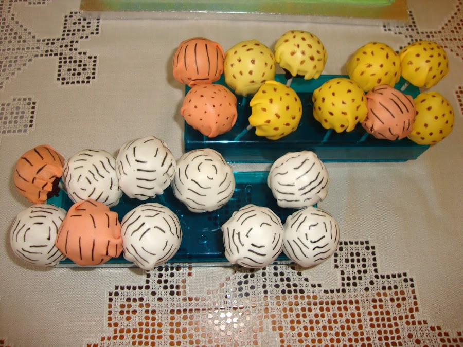 Los cakepops era de bizcocho de chocolate cubiertos de fondant imitando la piel de los animales.