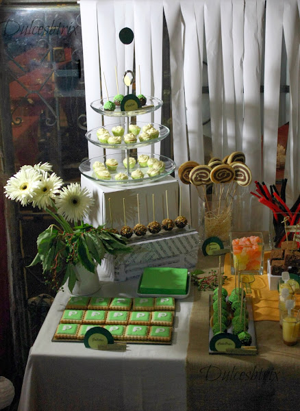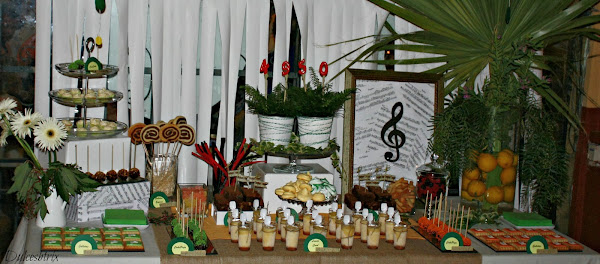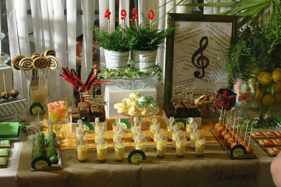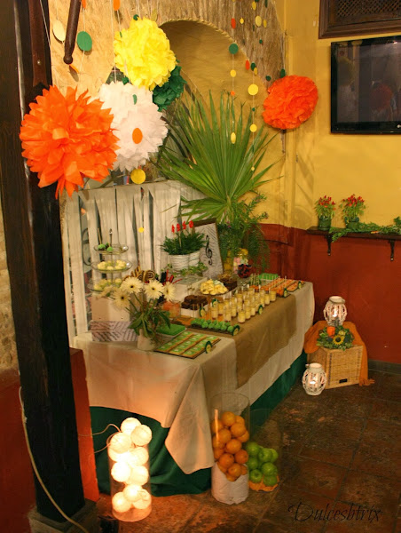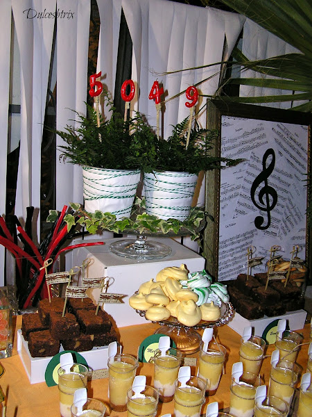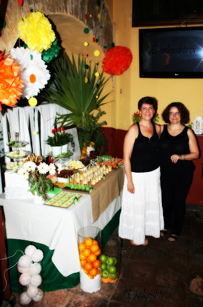 Ellos confiaron en mi para preparar una mesa dulce que sirviese de colofón a la cena y nos endulzara entre baile y baile. Eramos unas 50 personas y tuve la colaboración de una buena amiga, amante de la repostería, Conchi Montoro, con la cual elabore y compartí la preparación del evento.