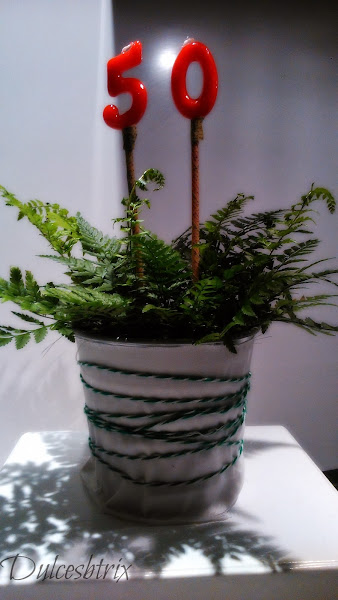 No quería tarta en la fiesta, pero si algo que la simulara o sirviese para poder soplar las velas, así que prepare un par de macetas con sus velas para que las soplaran bien fuerte. Y las coloque las dos en el centro de la mesa como protagonistas
