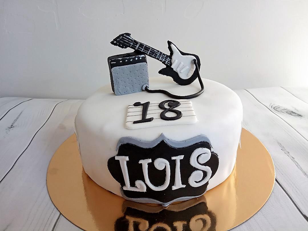 Esta mesa dulce es para celebrar una fiesta sorpresa con motivo de la mayoría de edad de Luis. Como a casi todos los adolescentes le apasiona la música y las guitarras.