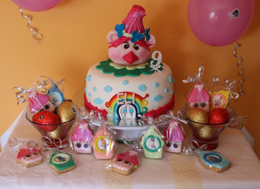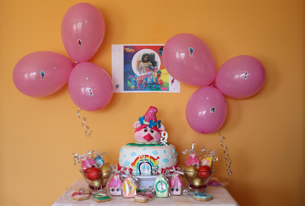 El 29 de marzo mi hija pequeño hizo 9 años y para su celebración le hice esta mesa, después de cambiar y cambiar el tema de su cumple al final escogió los trolls y como protagonista Poppy.