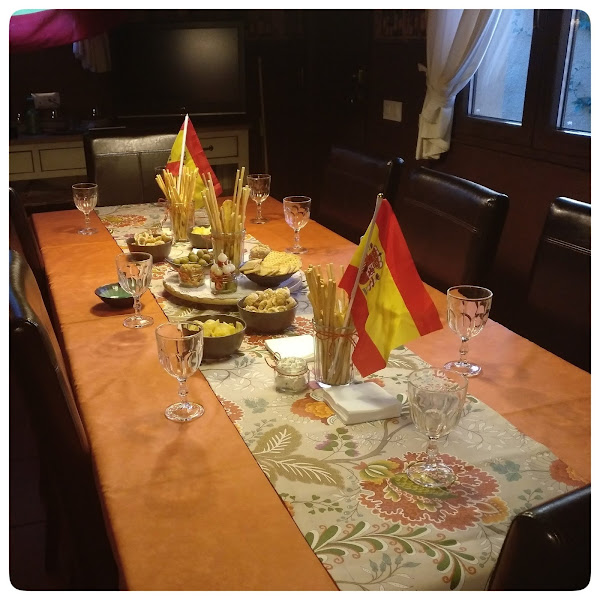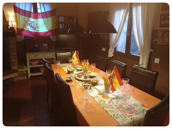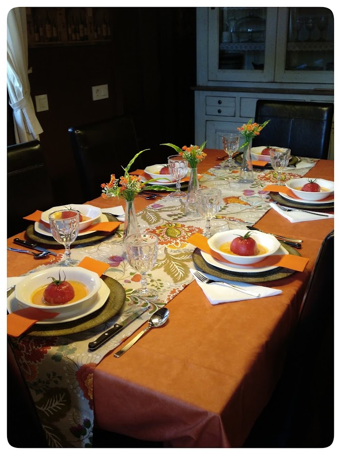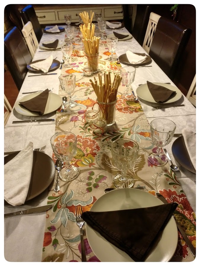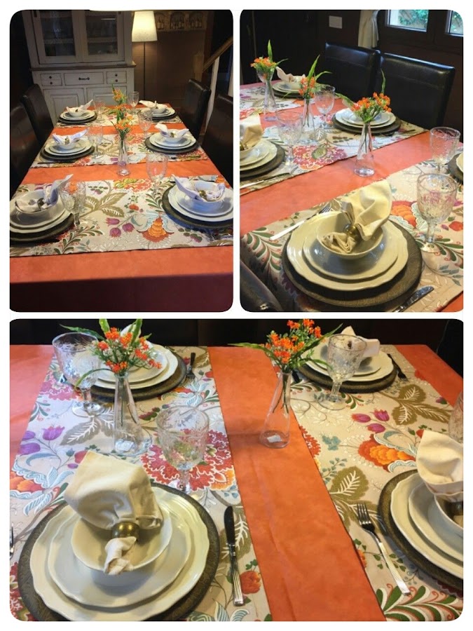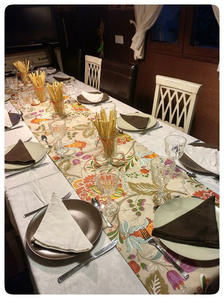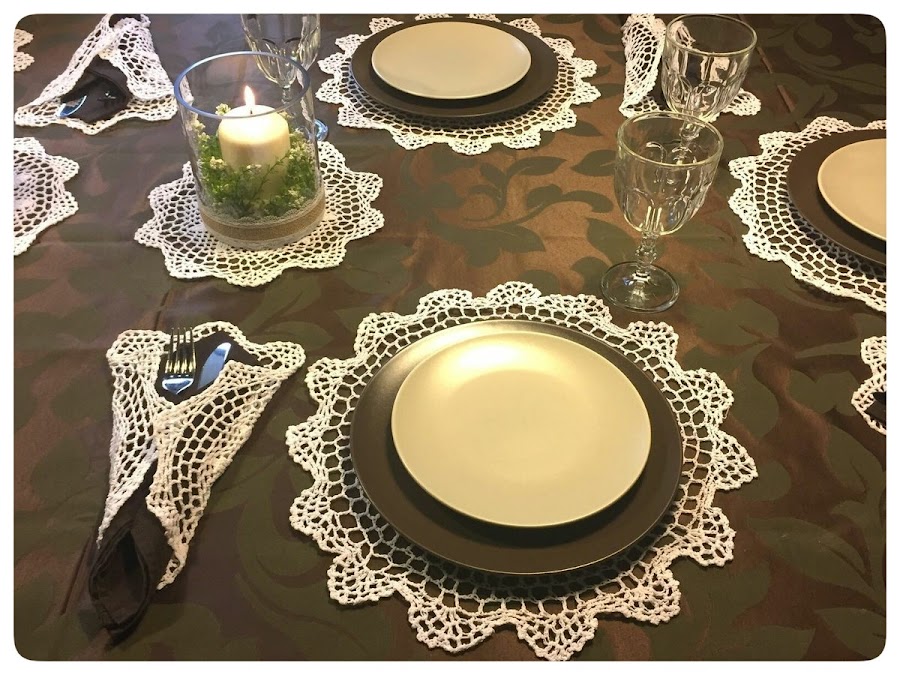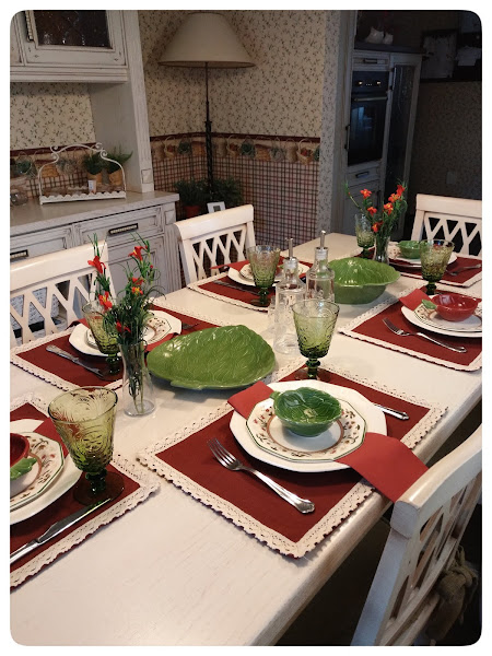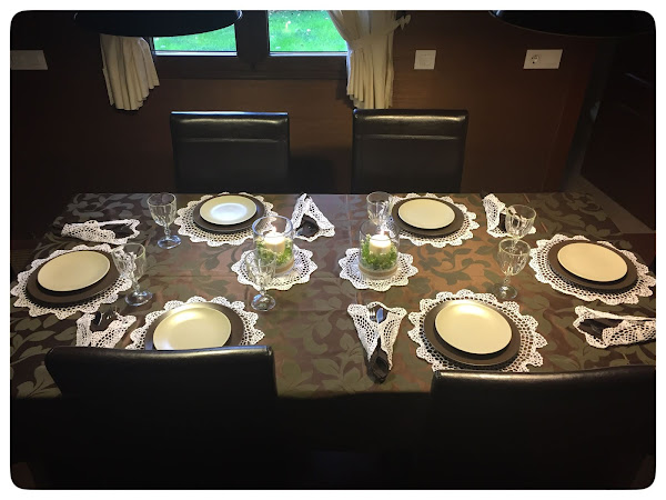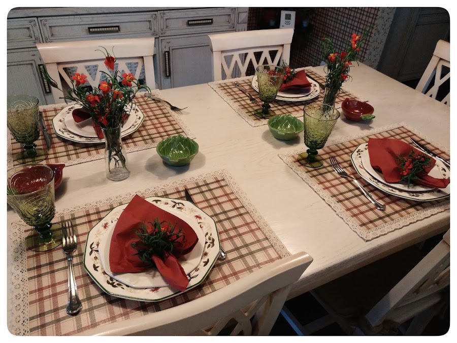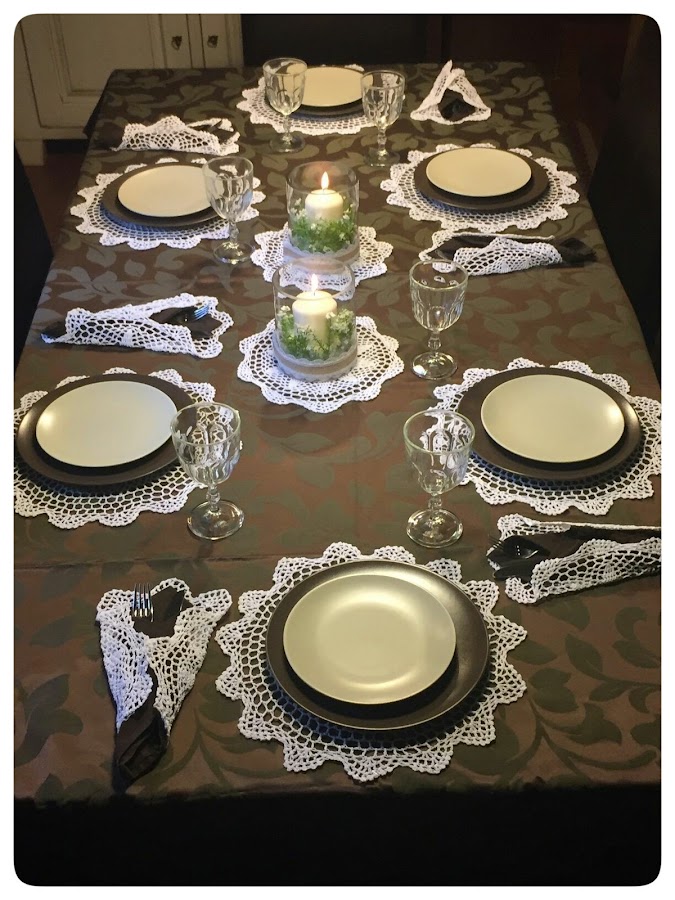 Mesa decorada con los manteles individuales que hice con el papel de la cocina.