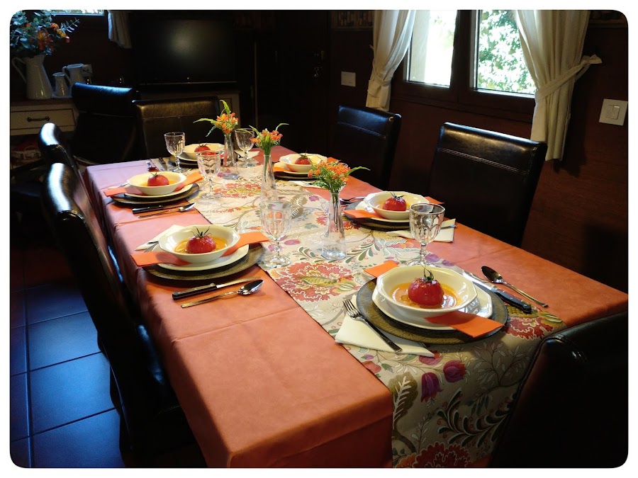 MESA DECORADA CON MANTEL Y CAMINO DE MESA ANTIMANCHAS