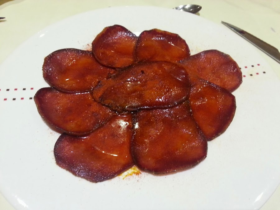 Ya que nos daban la opcion de elegir de entrante y plato uno a cada uno optamos por pedir uno distinto cada uno y asi probar todo lo que nos ofrecian, parrillada de verduras con queso de cabra, lengua curada en aceite y pimenton, rulo de carrillera de ternera.