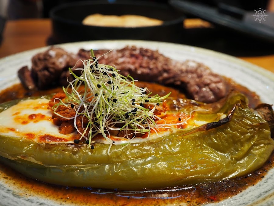 Como plato principal destaca el chile relleno: chile chilaca relleno de queso adobera acompañado de vacío de ternera y chorizo: muy sabroso.