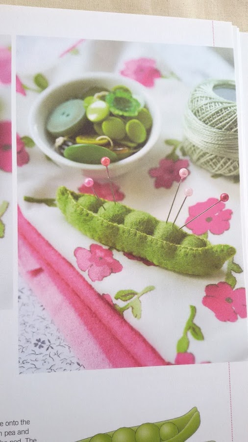 No he hecho ningún acerico de este libro pero estos guisantes en su vaina me encantan. Es mi alfiletero preferido de todo el libro.