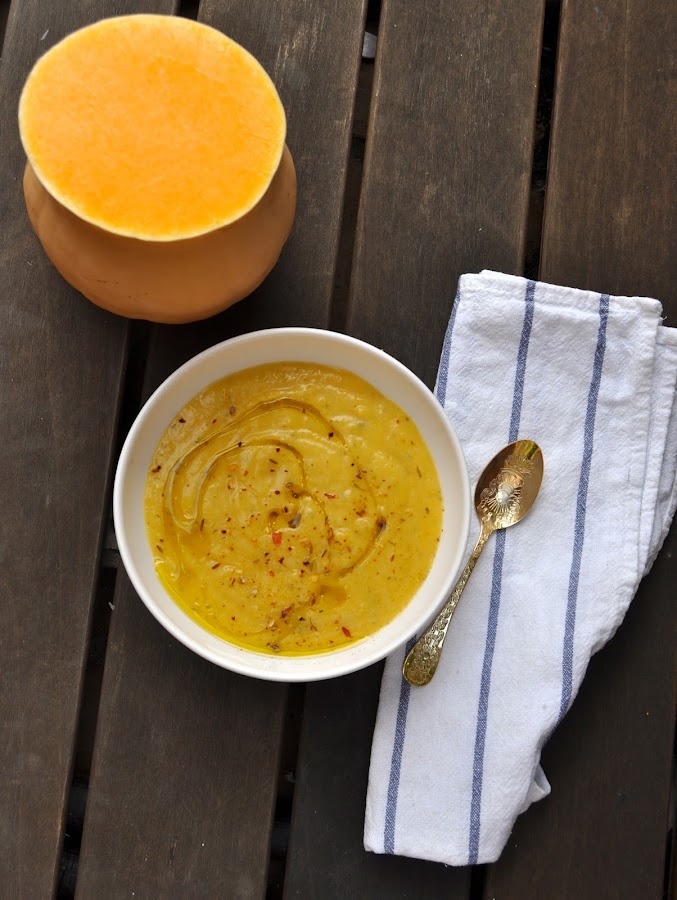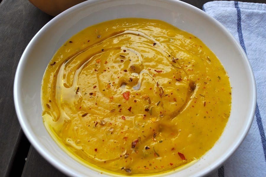 Y a la hora de servir, calentamos, chorro de aceite de oliva y pimientas variadas al gusto. Los tropezones de pan los pongo a parte para los amantes de los "barquitos".