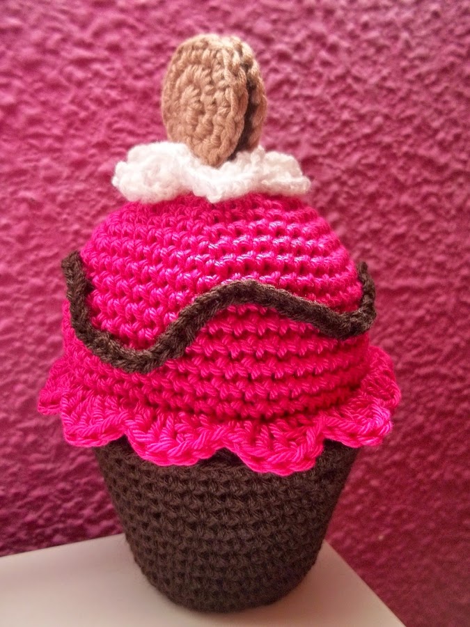 He tardado lo que me han parecido siglos en conseguir esta nueva receta, porque ya no son patrones, los considero recetas, buscaba algo sencillo, que hiciera contraste y que no quitara protagonismo al color fuxia, y aquí lo tenemos: un cupcake de frambuesas con galleta, un poco de nata (crema de leche) y algo de sirope de chocolate para decorar.