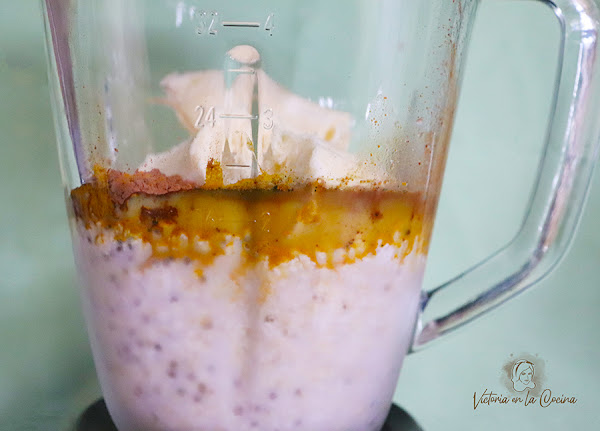 2. Al día siguiente en una licuadora o con un mixer manual, procesa todo hasta que quede bien suave el smoothie. Si lo quieres tomar aún más frío, puedes agregar unos cubitos de hielo. Y ya está. Así de sencillo y vas a ver que queda buenísimo.