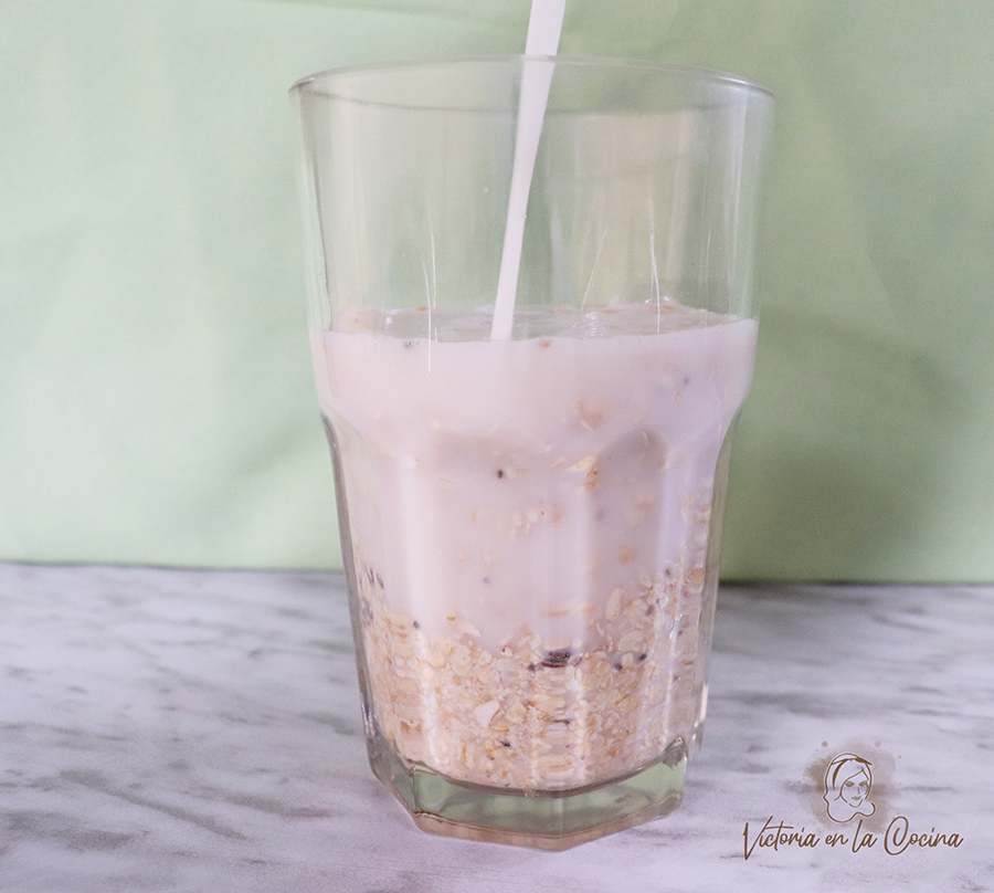 Preparación: 1. Dejamos toda la noche reposando la avena + semillas de chía y leche en un vaso en la heladera/refri.