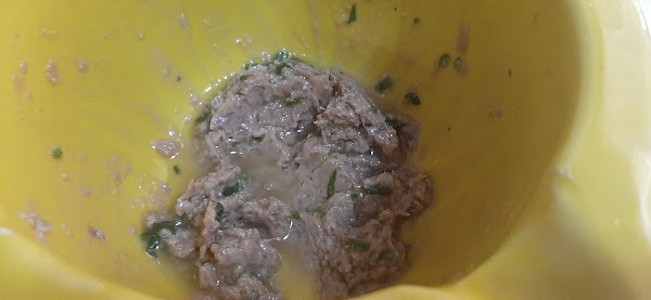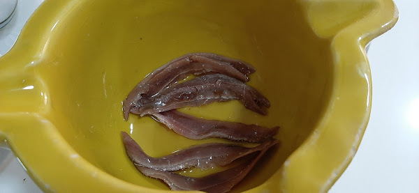 2.- Cuando ya tengáis la pasta hecha, añadís el vinagre. Yo no le añadí aceite porque con el que iba sacando de las anchoas, no me hizo falta.