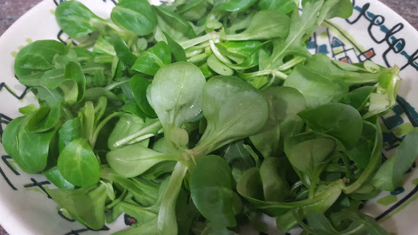 1.- Primero lavamos los brotes de rúcula y canónigo y los tomates, y los escurrimos todo muy bien.