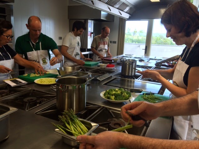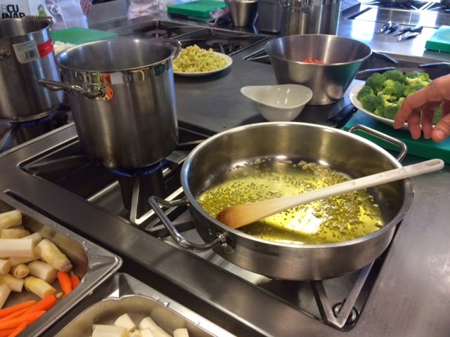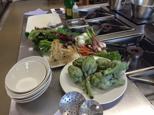 Antes de irnos, nos dieron unos táper para que nos lleváramos lo que quisiéramos de lo que habíamos cocinado, así que dicho y hecho...ya tenía la comida para el sábado: verduras de primavera con crema de jamón ibérico!