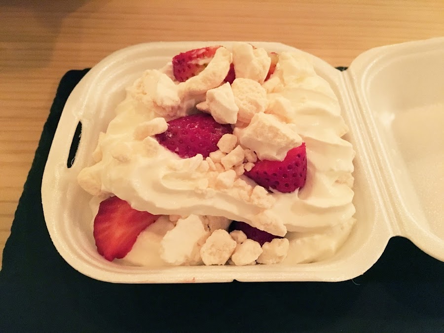 Por último, de postre pedimos uno para compartir (no recuerdo ahora mismo el nombre!), que eran fresas con nata (crema de leche) y merengue de fresa. Yo no soy muy muy golosa, así que no sabía si me iba a parecer demasiado dulce con el merengue, pero la verdad es que estaba muy suave y me gustó mucho la combinación con la fruta y la nata (crema de leche). Hubiera seguido comiendo un poco más, jajaja.