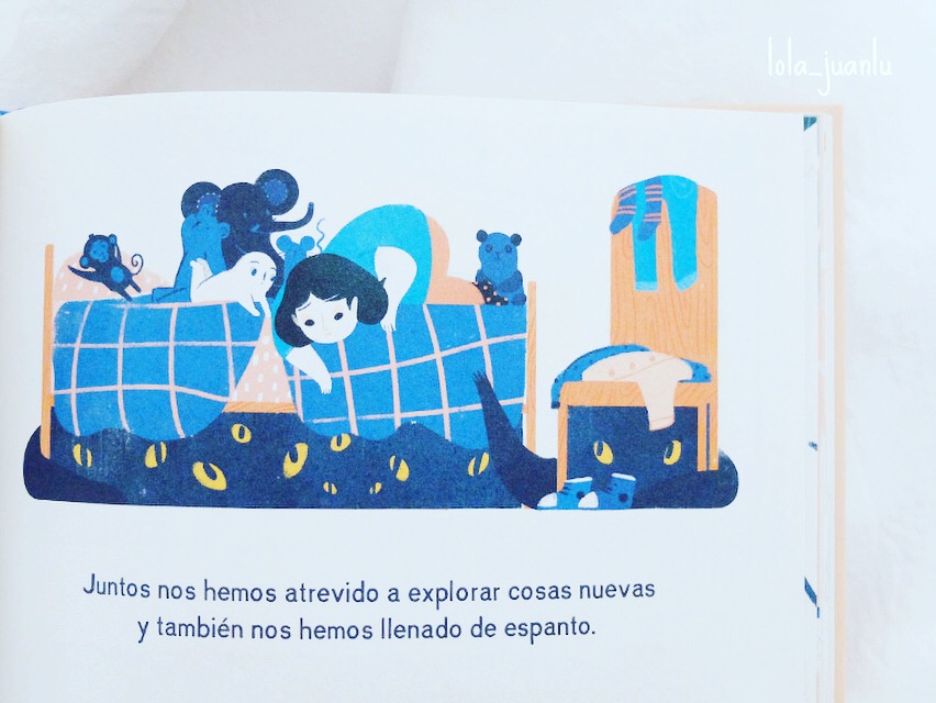 Si tenéis un niño o niña que sufra de terrores nocturnos, os recomiendo que leáis con ellos este libro, es fantástico y os aseguro que os ayudará a entenderlo mejor. Y os animo a que dibujéis con ellos sus miedos y a compartir con ellos vuestros miedos, como la autora de este libro hacía con sus padres, os ayudará.