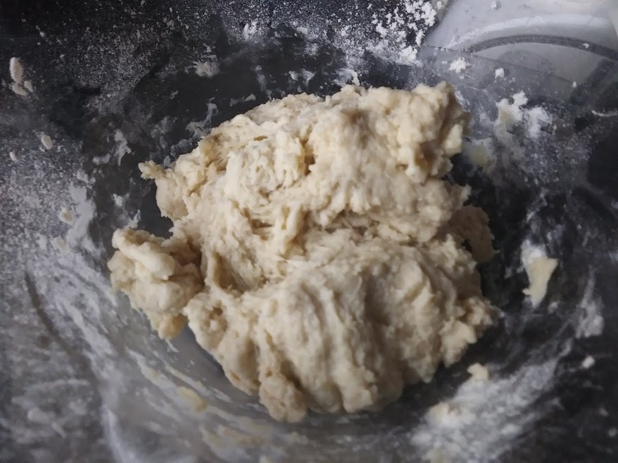 Vamos echando harina y amasando hasta que se despegue de las paredes del bol y se pueda amasar con las manos sin que se nos quede pegada.