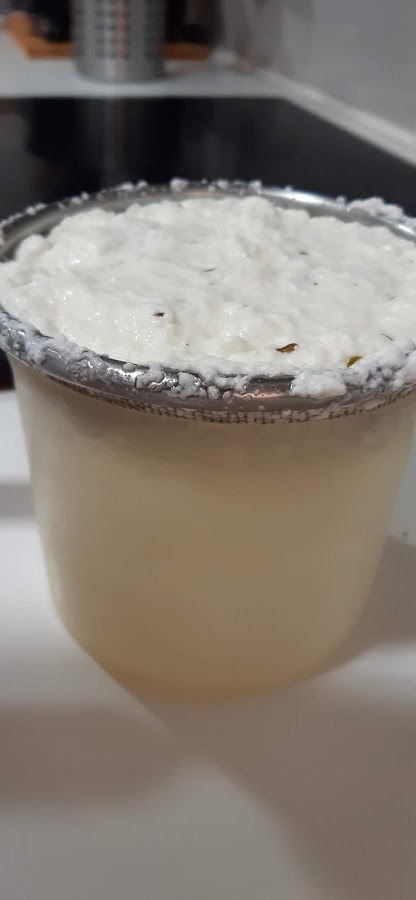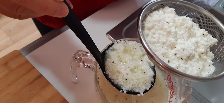 5.- Pasado ese tiempo, vamos colando la mezcla por un colador y separarlo del suero.