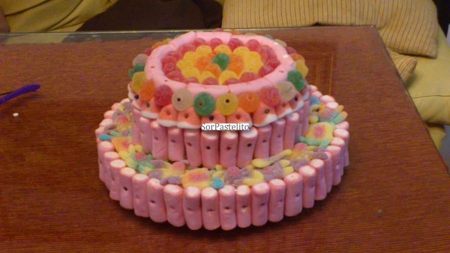 Esta es la primera vez que hacía una tarta de chuches y tenía que quedar mu mona porque era para la Primera Comunión de Fernando , el hijo de mi amiga Manoli.