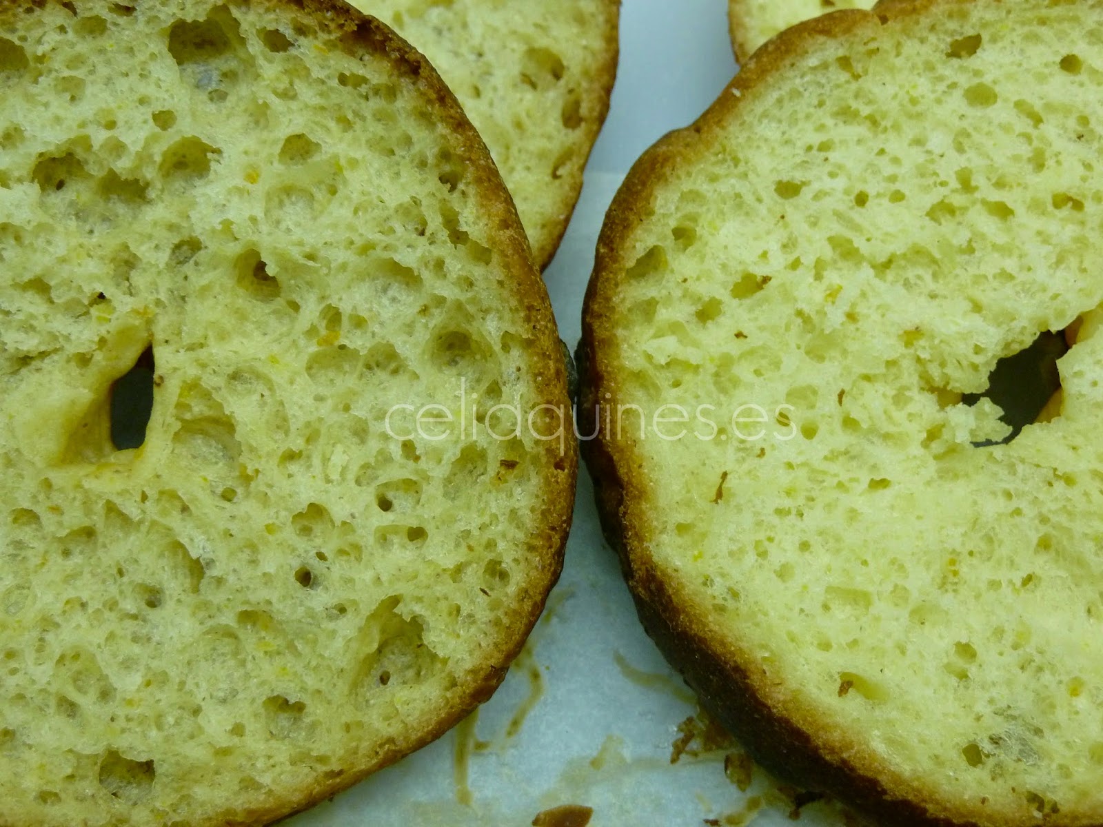 Aquí se puede apreciar la diferencia de alveolado entre utilizar harina de trigo sarraceno (a la izquierda) o preparado panificable Beiker (a la derecha)