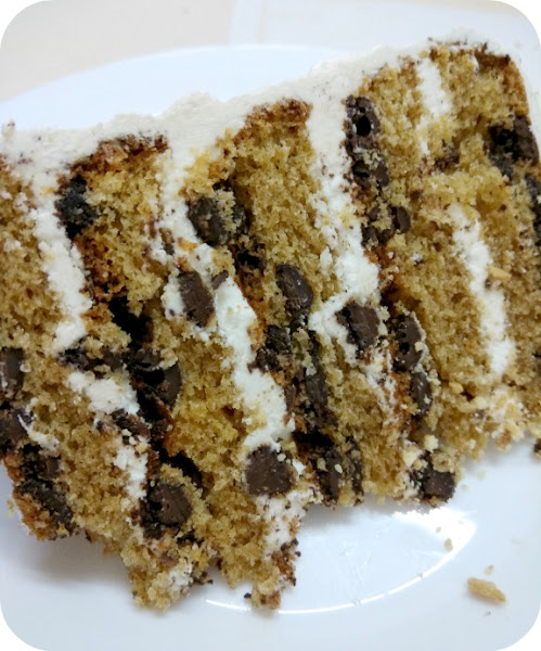 Para el bizcocho de cookies hice la receta del blog de Megasilvita tal cual pero lo hornee en 5 bizcochos individuales de 15cm de diámetro, ya que así me ahorraba el cortarlos y demás.
