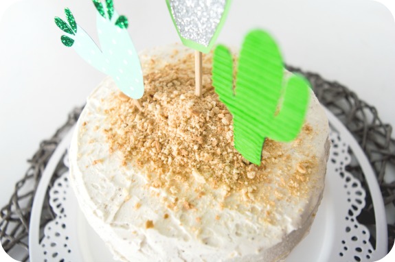 Triture unas galletas maría para imitar la tierra y la decore con unos toppers de cactus que hice yo misma ( y que te enseñare el DIY en breve ;)) y ta chan!! listo.