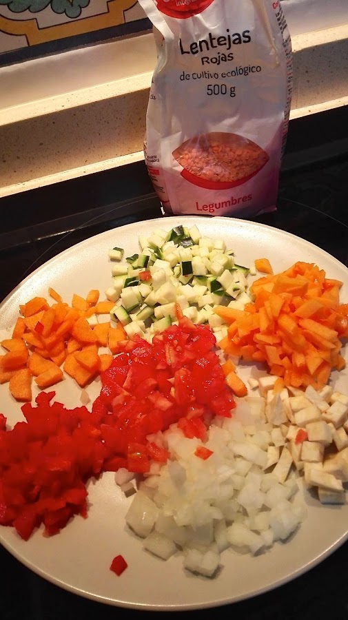 Luego vamos a picar la verdura, aquí os dejo una foto de lo que llevaba mi plato.