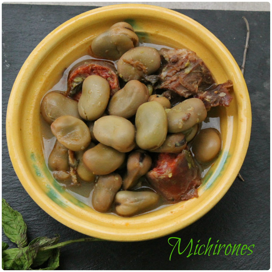 Es un plato muy típico de Murcia, se puede hacer de diferentes maneras, con patatas, con sobrasada, también con habas secas, en ese caso se tendría que poner a remojo.