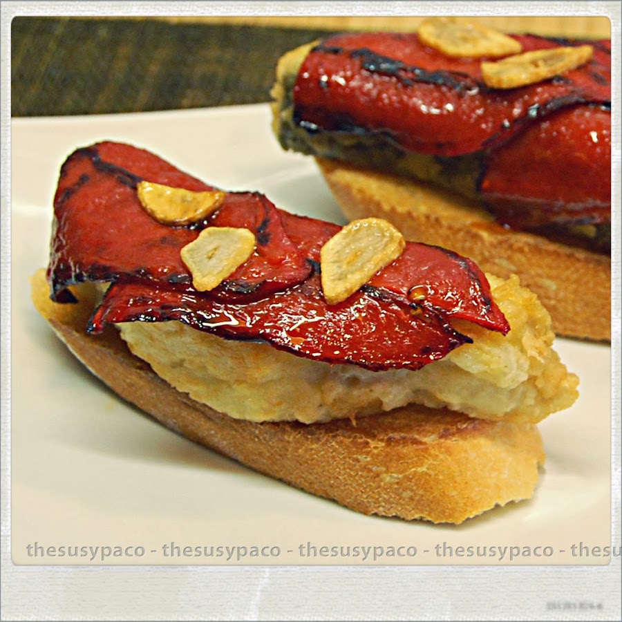 ~ Solo queda montar: pan tostado, bacalao, pimiento, ajitos y las cortezas de bacalao