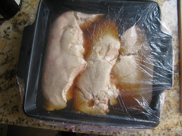 Desangrar el hígado en agua muy fría durante 30 minutos más o menos. Quitar los nervios. Salpimentar y poner a marinar con el vino oloroso, el brandy y las hojas de laurel. Tapar y entrar al frigorífico durante 24 horas.