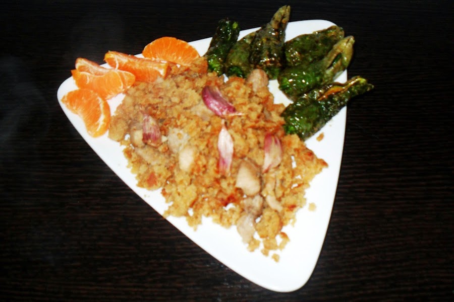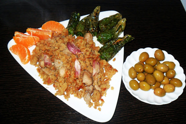 Listo para servir con los pimientos, mandarina y un platito de aceitunas para acompañar :)