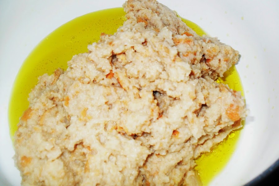 Ponemos por cada pan un vasito pequeño con aceite de oliva y en ese aceite freímos los ajos una dorados los retiramos.