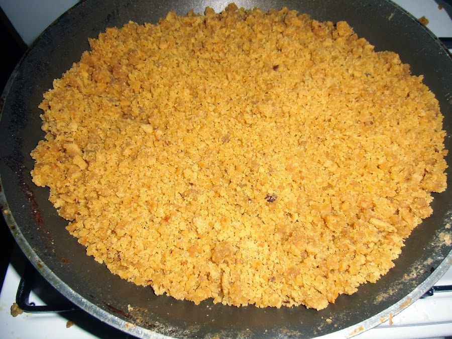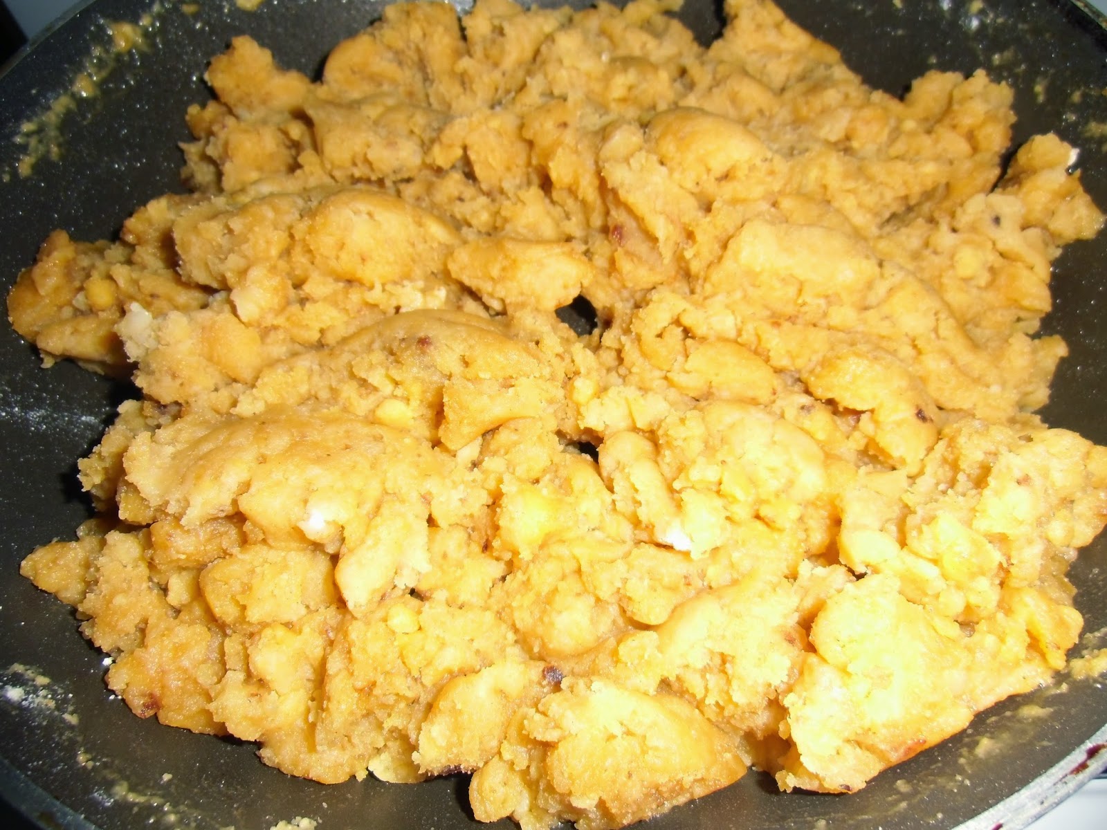 Ponemos el fuego fuerte y seguimos moviendo la masa, cortándola con la espátula, veremos como va cambiando de forma.