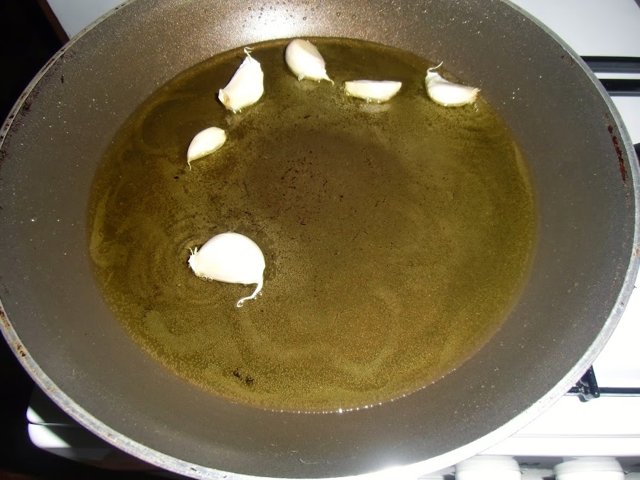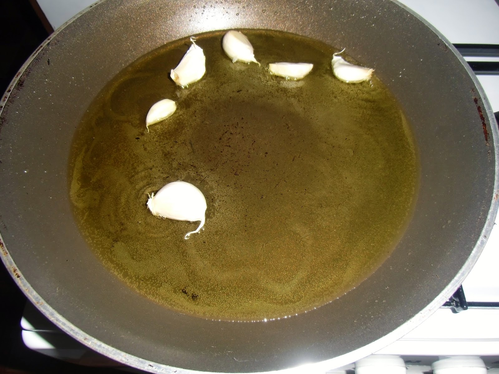 En una sartén con el fondo de aceite de oliva caliente echamos los ajos sin pelar