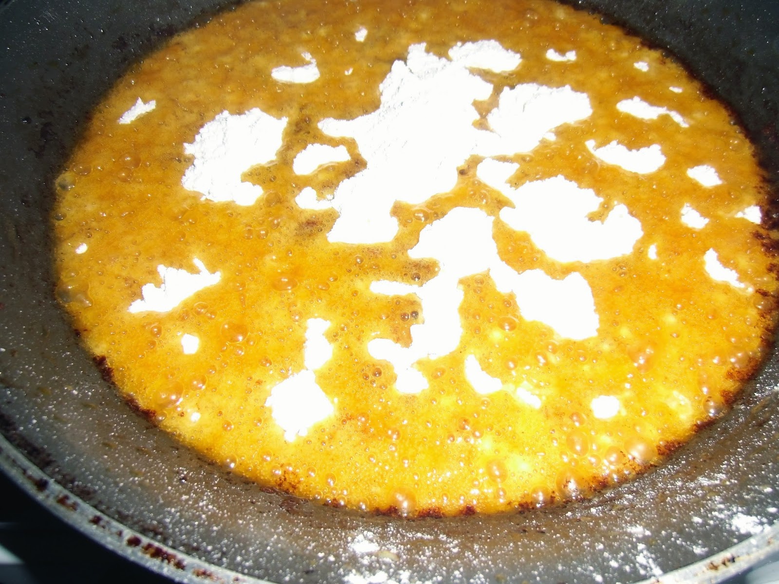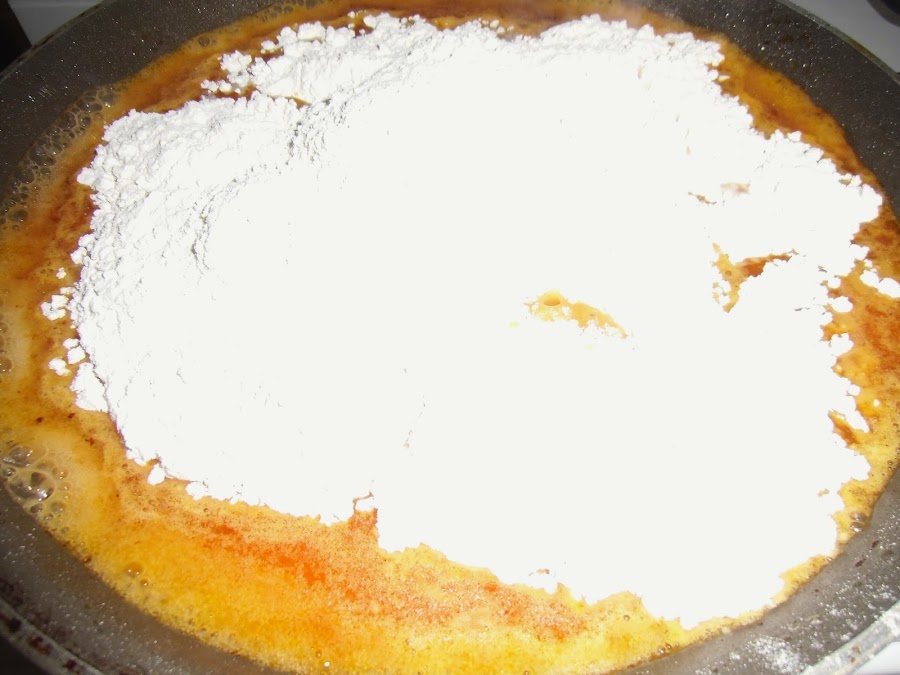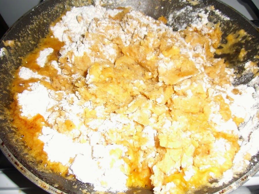 A continuación añadimos un poco de harina a la sartén para que ligue con el aceite