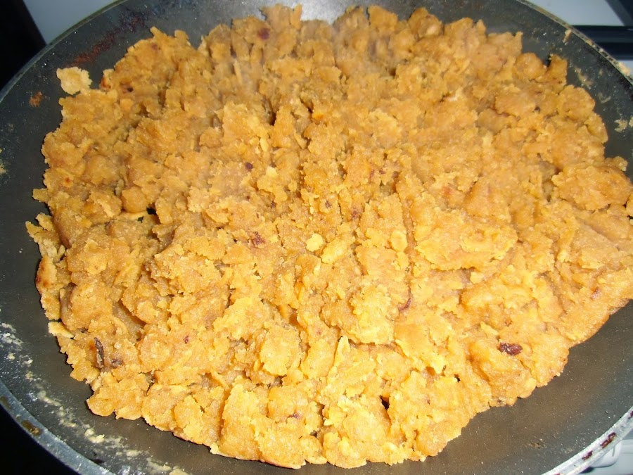 Con la ayuda de una espátula de madera vamos moviendo hasta formar una pasta