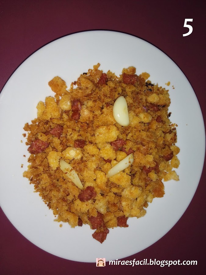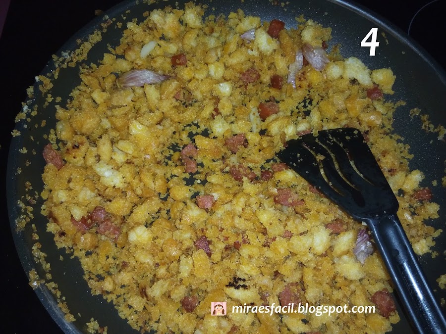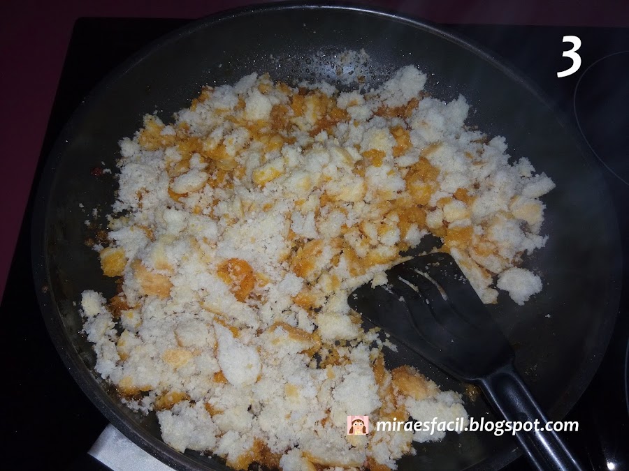 Ponemos el pan en el aceite. Mover hasta que estén sueltecitas y doraditas.