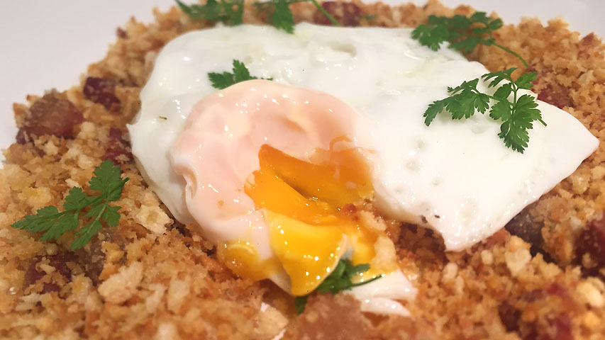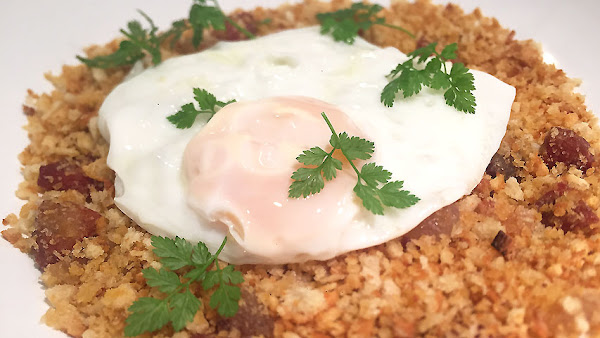 Reserva el pan hecho migas hasta el momento de echarlo a la sartén.