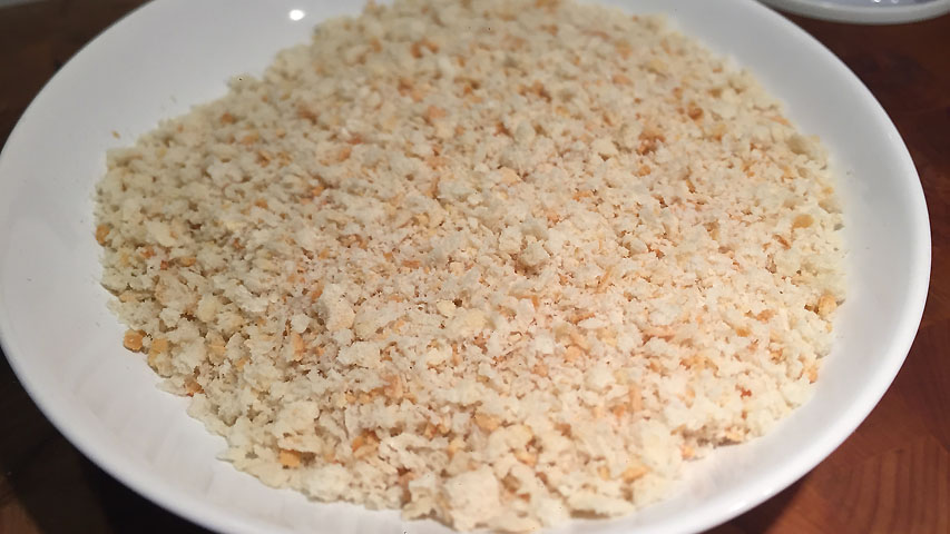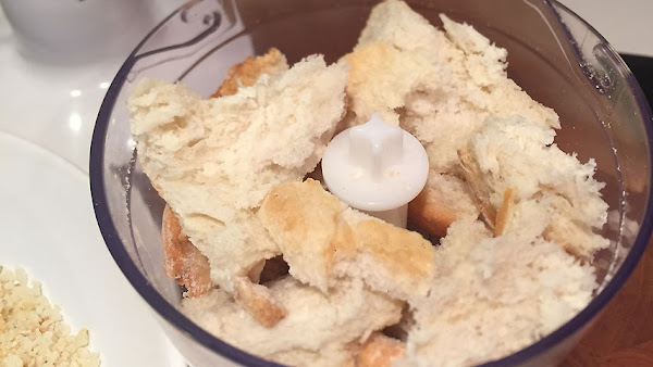 Tritura el pan en un robot de cocina y resérvalo.