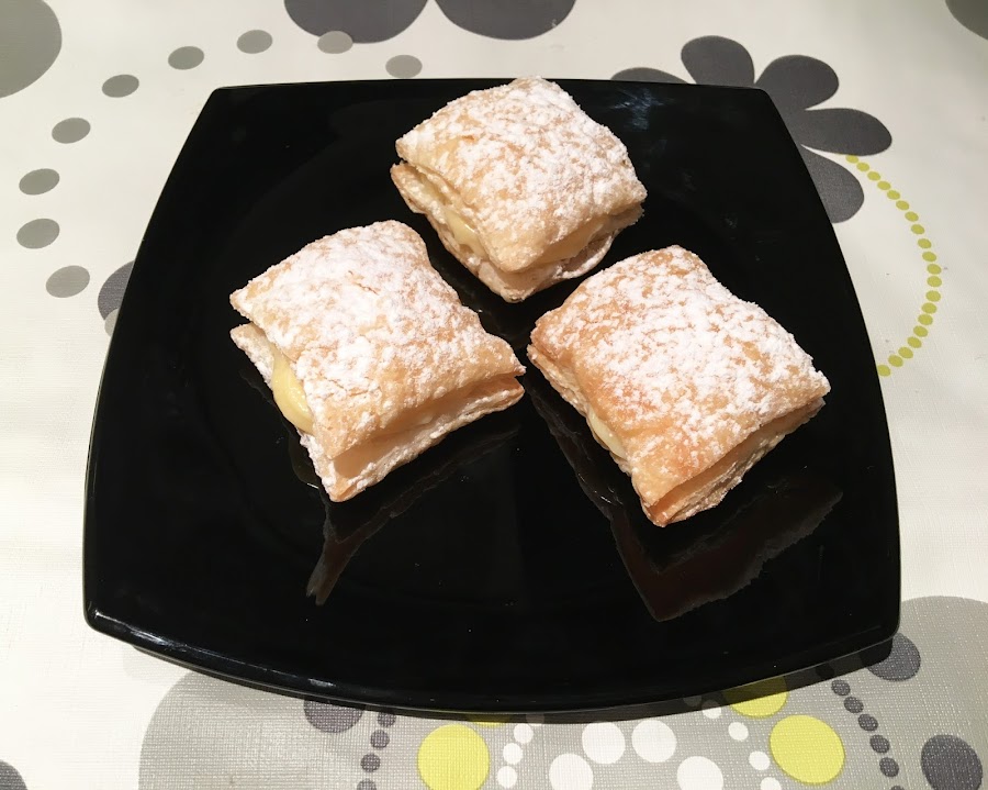 *Truco para cocinillas: está mucho más rico si rellenas el hojaldre 2-3 horas antes de comerlo, ya que se ablanda un poquito y quedará delicioso.