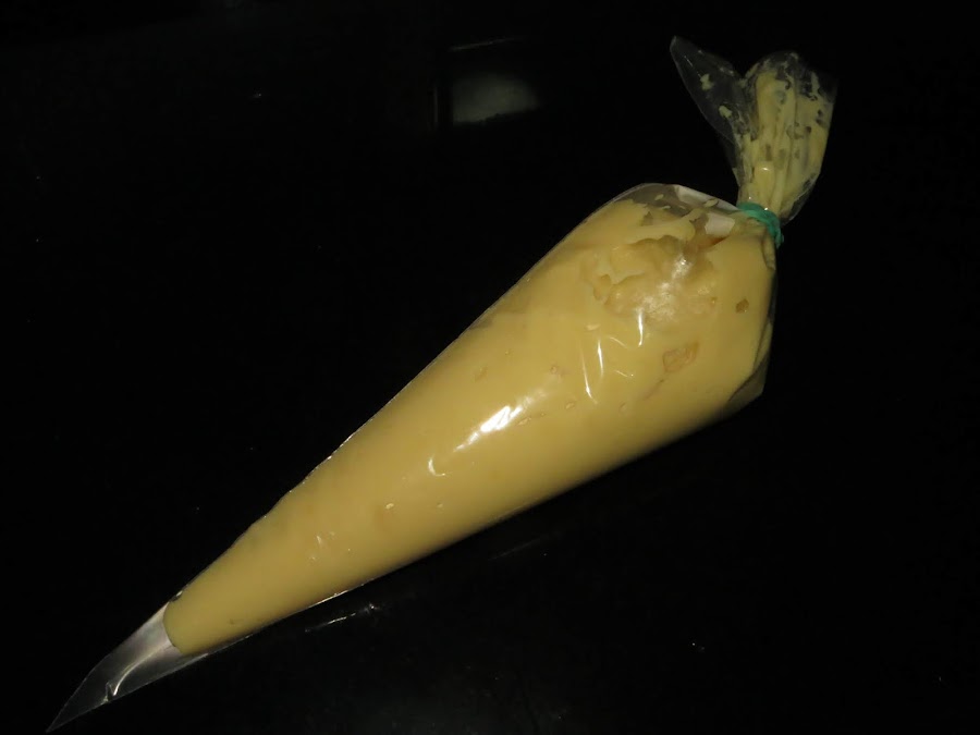 Una vez fríos los cortáis por la mitad con un cuchillo de sierra. Metéis la crema pastelera en una manga y los vais rellenando.