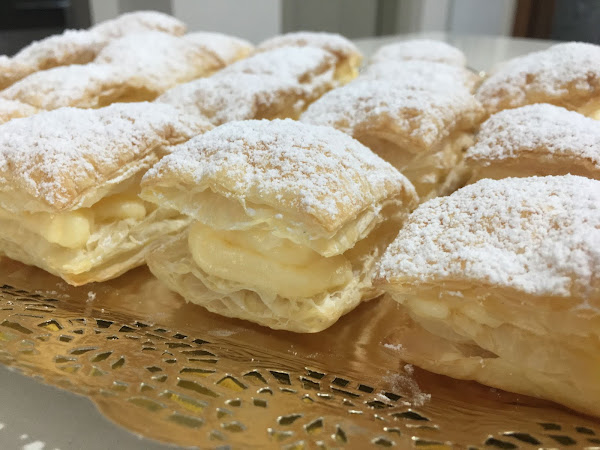 Los Miguelitos son unos pasteles de fino hojaldre rellenos de rica crema pastelera y cubiertos con azúcar glass.¡ Así de fácil !