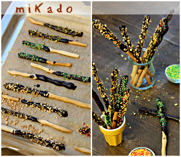 Mi elección fueron las galletitas Mikado en versión casera porque me sirvió también para explicarles que existe un juego de verdad que se llama así y porque me pareció que se prestaba mucho al entretenimiento porque lo de hacer gusanitos de masa en plan plastilina es una oferta de ocio difícil de rechazar entre los 4 y 7 años. En este caso veréis que la longitud de los palitos dista mucho de ser la misma en todos los casos. A veces porque salieron así y a veces porque se nos rompían. Pero nos fuimos comiendo los trocitos en el proceso.