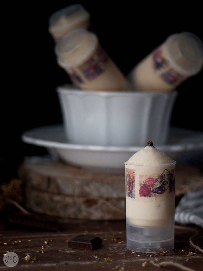 - Llenamos los moldes de helado hasta la mitad con el helado ya mantecado.