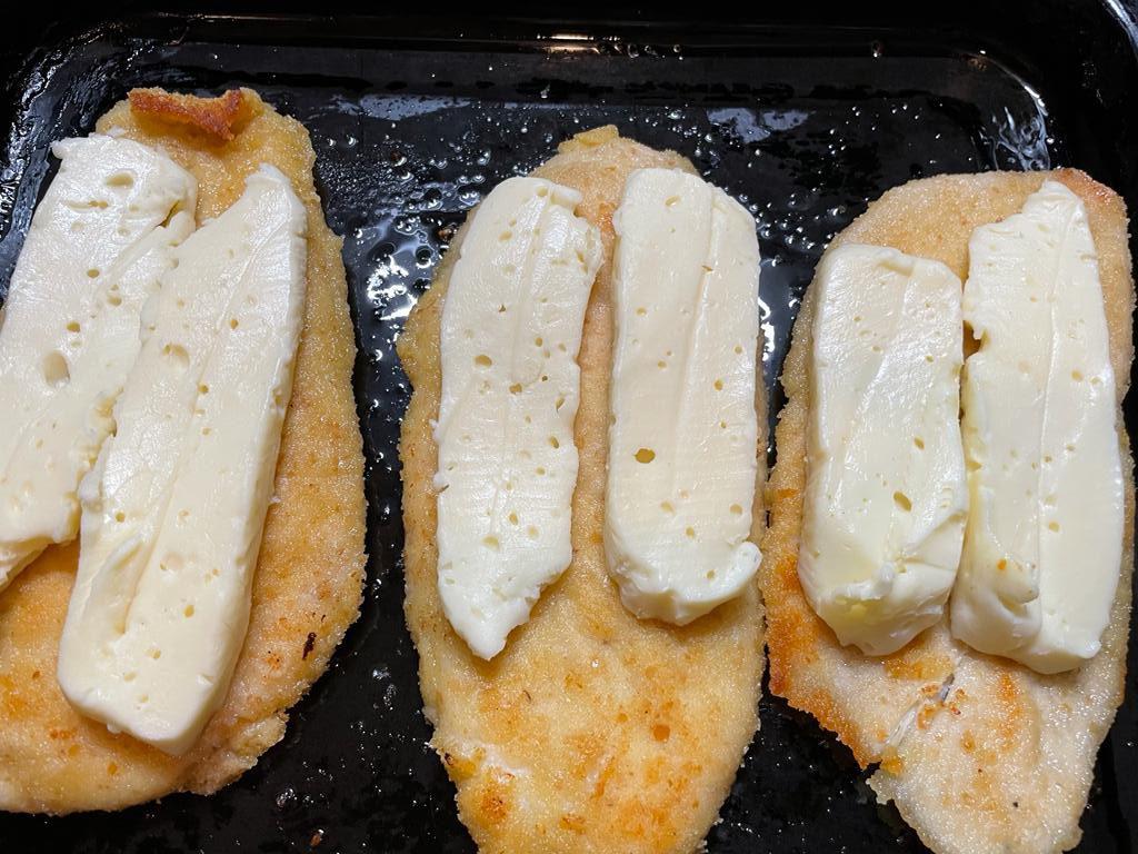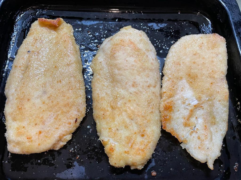 Pasos 3Luego de pasar las supremas por harina llevar al huevo batido y por último al pan rallado (pan rallado c/ queso rallado y ajo).