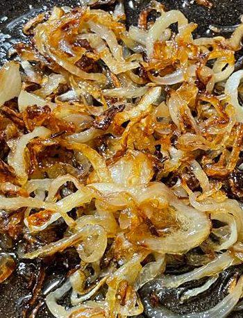 con cebolla caramelizada