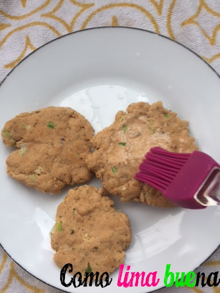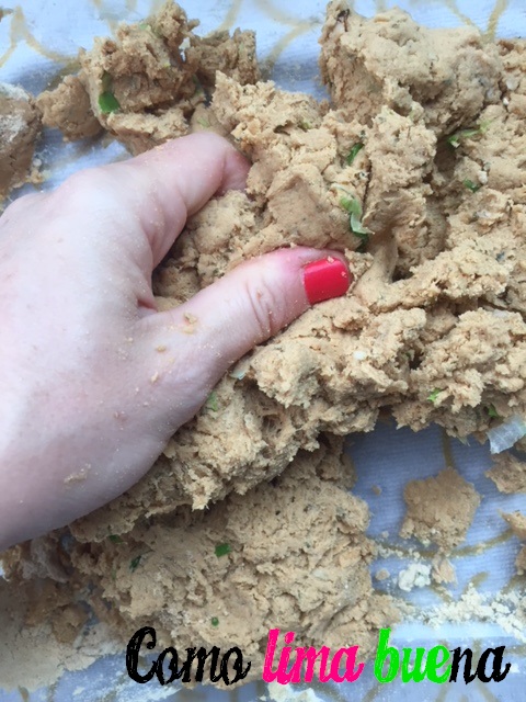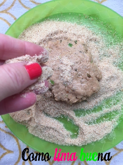 Armamos bolitas con las manos y las aplastamos para darle la forma de milanesa