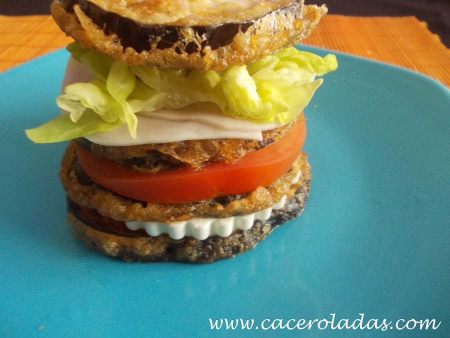 El otro día me apetecía comer berenjena rebozada que me encanta y así me puse a ello, pero se me ocurrió meterle más ingredientes para hacerlo un poco más completo y así me quedó el invento.
