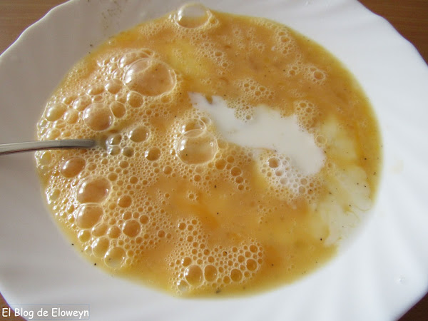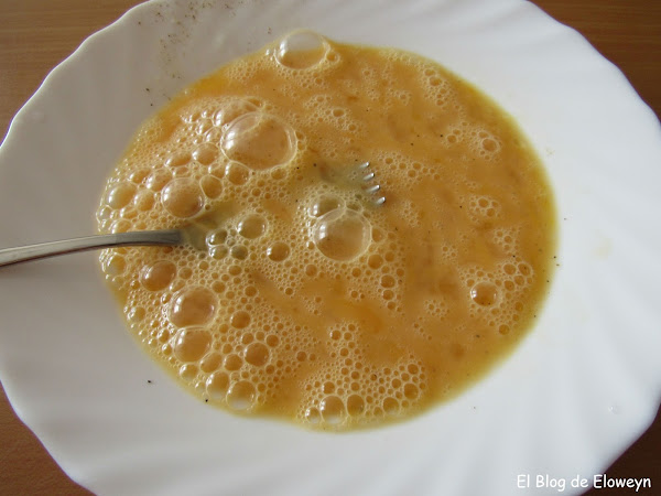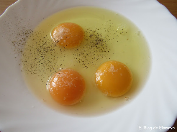 A continuación partimos los huevos en un plato y añadimos sal y un poquito de pimienta. Si no os gusta la pimienta, tampoco es obligatorio... jajaja.
