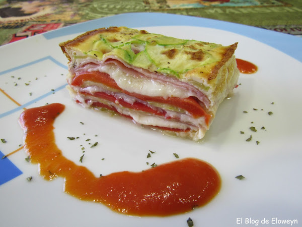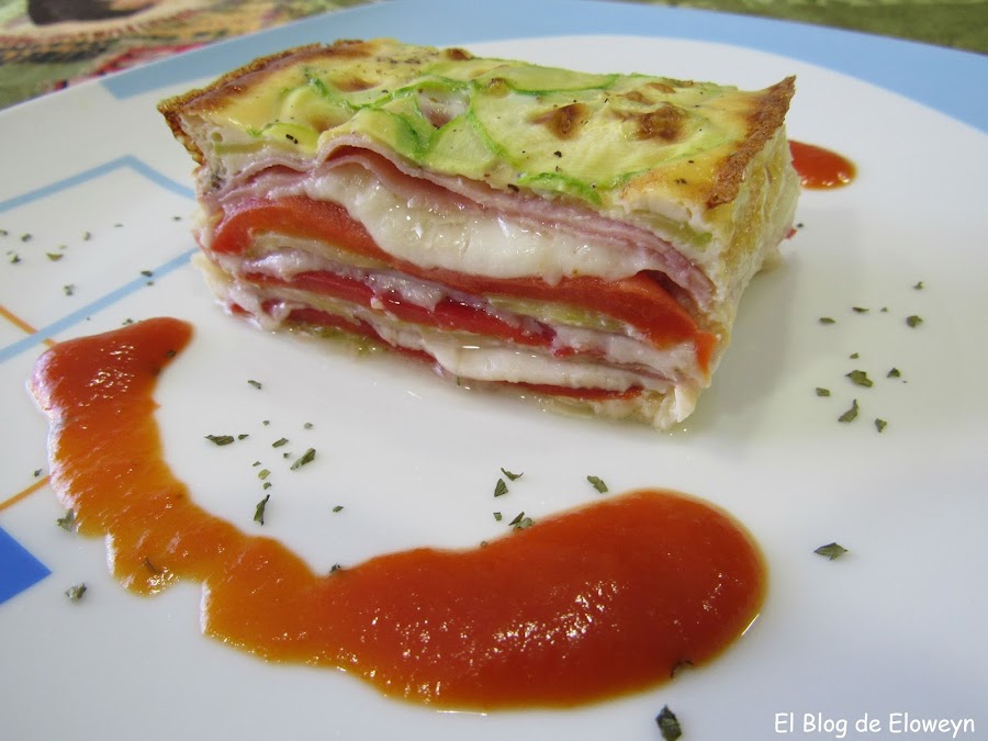 Primero de todo, deciros que mi marido está a dieta y yo también lo estoy "por solidaridad", no porque lo necesite... jajaja. Además, hemos decidido adoptar a una gatita de un mes y medio, ¡y no doy abasto con todo!. Por ese motivo he decidido darle un "descanso relativo" al blog. Por lo tanto, no publicaré recetas tan a menudo como lo solía hacer antes. Eso sí, de tanto en tanto, al menos yo, me voy a saltar la dieta y publicaré alguna cosita, como este milhojas de calabacín, pimientos del piquillo, jamón y queso que está para chuparse los dedos y, para qué negarlo, no tiene muchas calorías... jajaja,